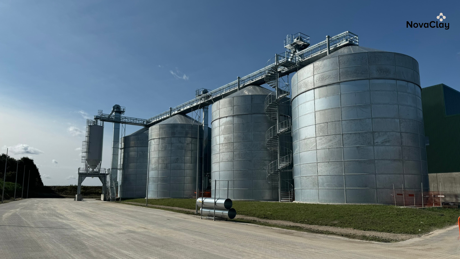 Siloer som en del af produktionsfaciliteterne hos NovaClay i Hobro.