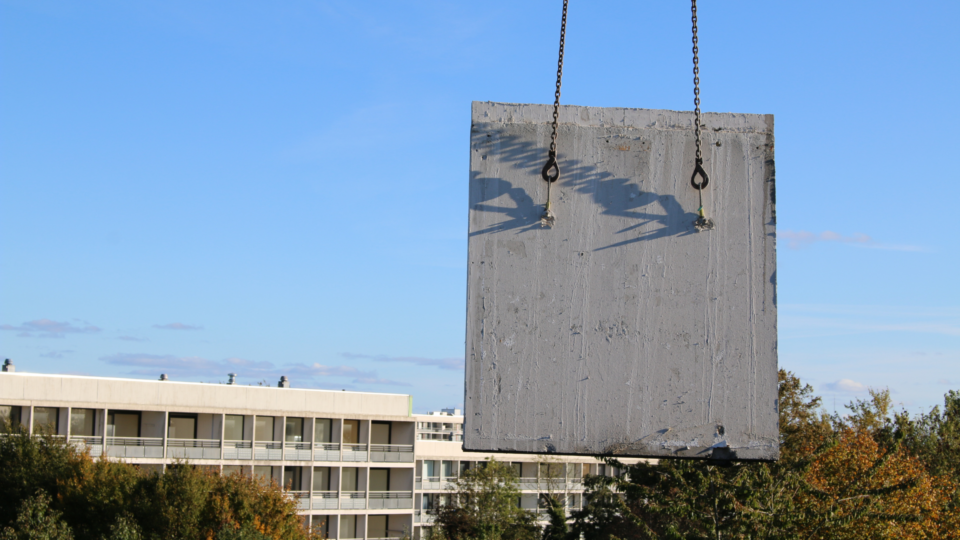 I DGNB kravene vægtes genbrug af betonelementer og cirkularitet højt. Her ses et arkivfoto fra Gellerupparken, hvor nedrivningsvirksomheden Kingo deltog i (P)RECAST-projektet med henblik på senere genbrug.