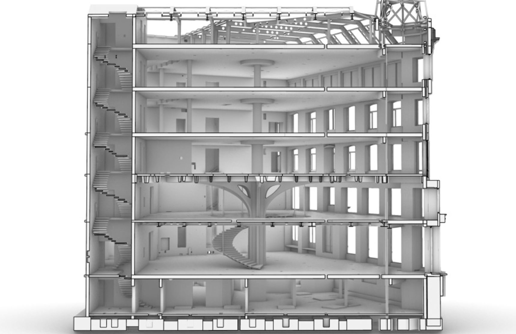 ”Faktisk kunne facaden på et tidspunkt sammenlignes med kulissen fra en filmby, hvor ydermurene udelukkende holder sig oprejst takket være et stillads. Det samme gjorde sig gældende her. Inde bag facaden startede genopbygningen bogstavelig talt helt fra bunden,” fortæller Peter Vejrum fra ingeniørfirmaet Søren Jensen. Sammen med DesignGroup Architects har firmaet været på en fantastisk ingeniør- og arkitektmæssig rejse.