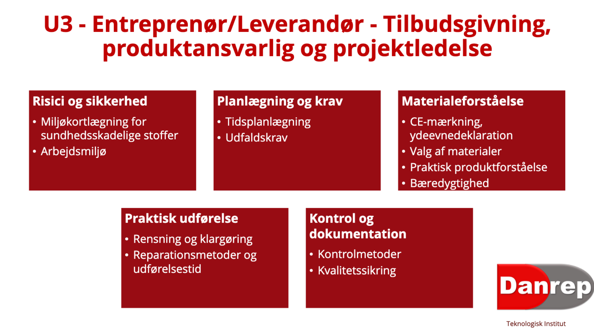 Indholdet af det nye kursus U3, der lanceres til efteråret. Blandt emnerne på kurset er vigtige punkter såsom praktisk produktforståelse, kontrolmetoder og kvalitetssikring.